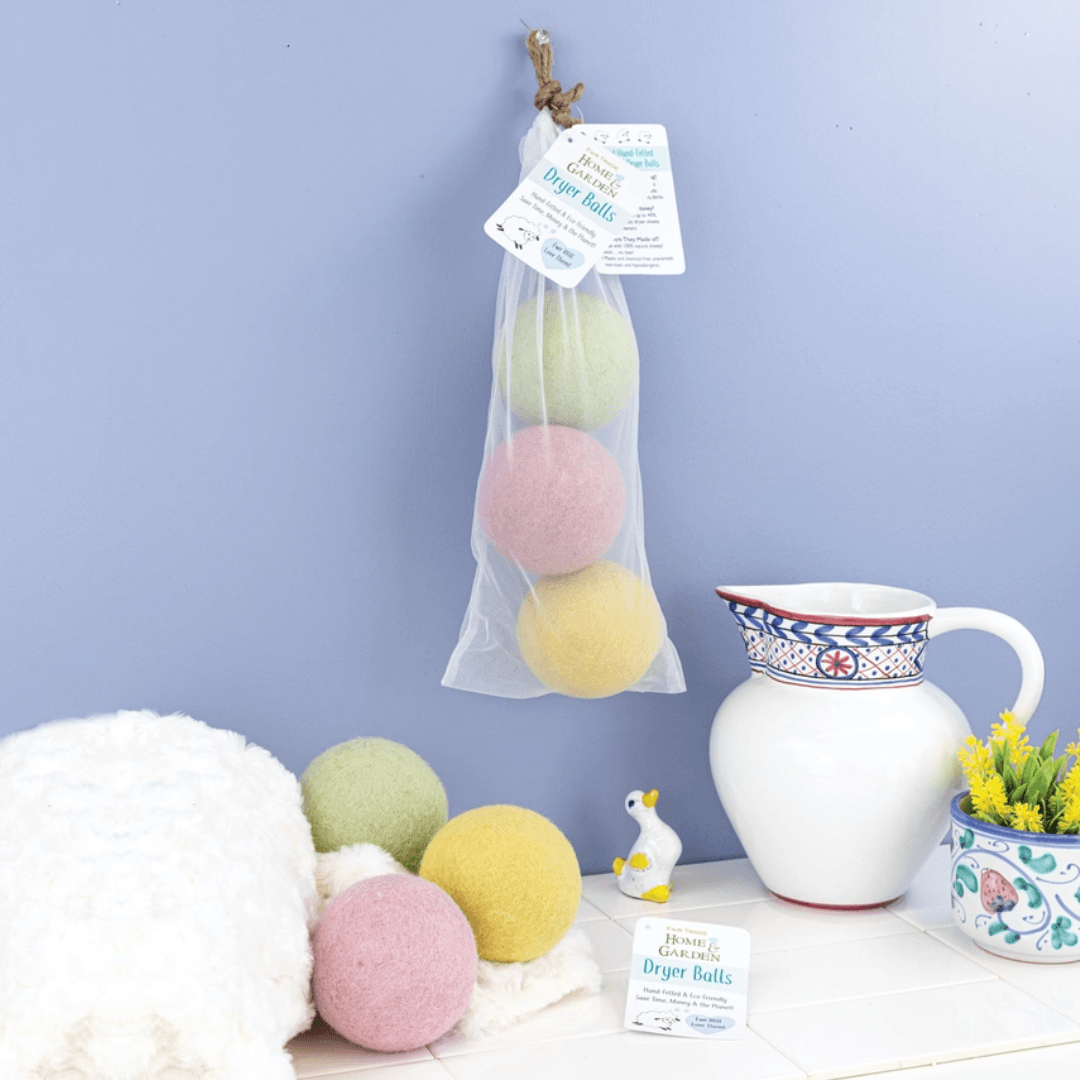 Enhance your laundry routine with these premium wool dryer balls, crafted in natural pastel colors. Made in Nepal by a certified fair trade production center, these dryer balls offer a sustainable, eco-friendly alternative to plastic options.