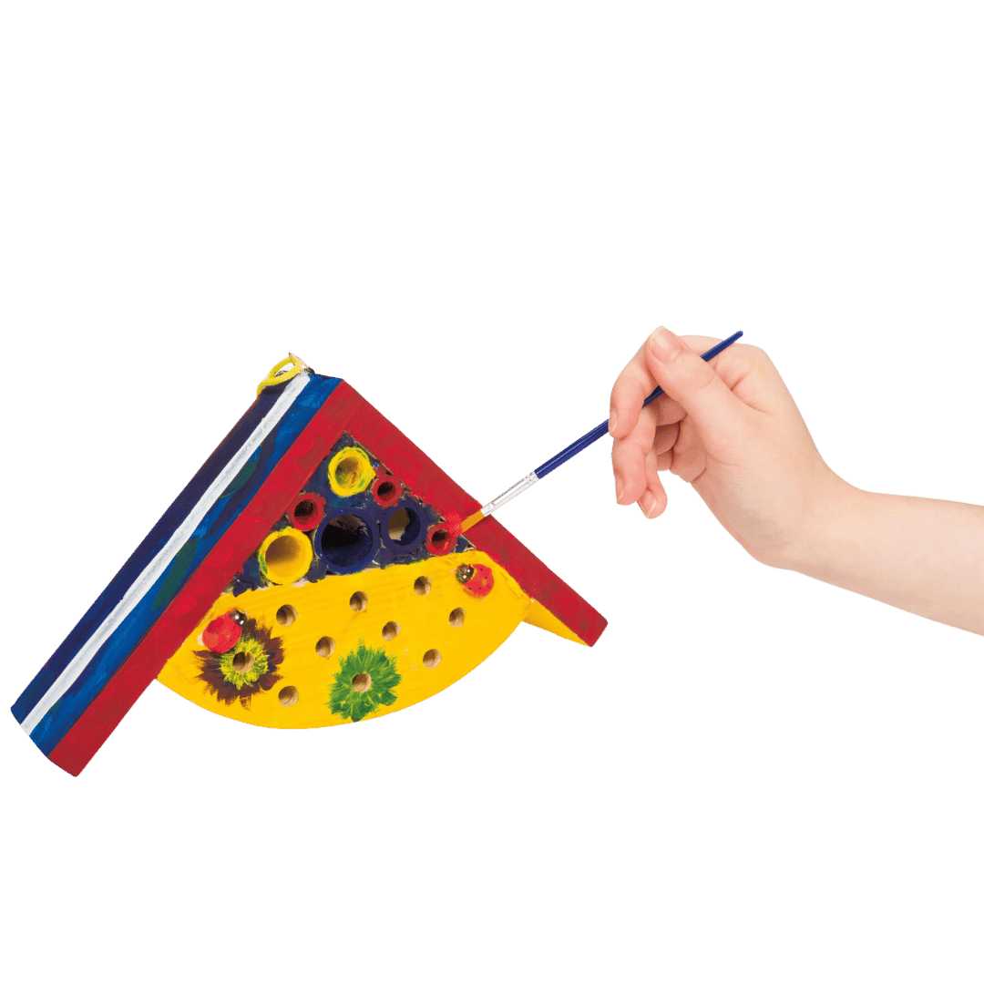 - Contents: 1 pre-assembled wooden bug house, 8 colorful paints, and 1 paintbrush