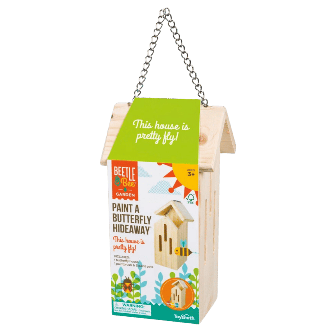 Encourage creativity and a love of nature with the Beetle & Bee Garden Paint A Butterfly House DIY kit! A best-selling arts and crafts toy, this kit offers a fun and engaging way for young kids to express themselves and enjoy the outdoors.