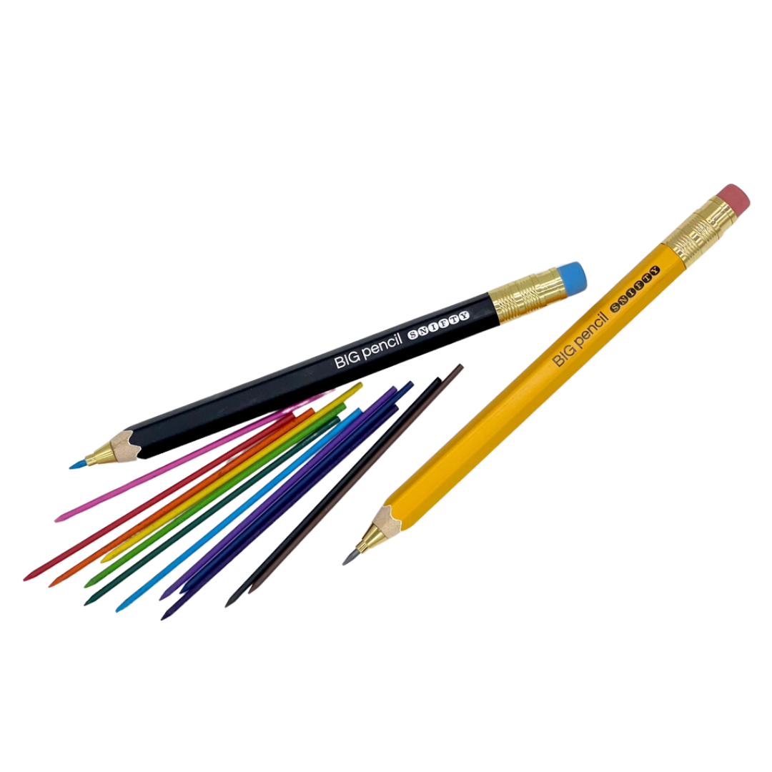 Experience the perfect blend of classic charm and modern convenience with our BIG COLORED Mechanical Pencil. This unique pencil combines the nostalgic feel of an old-school wooden pencil with the practicality of a mechanical design, offering a vibrant rainbow of colors in one tool.