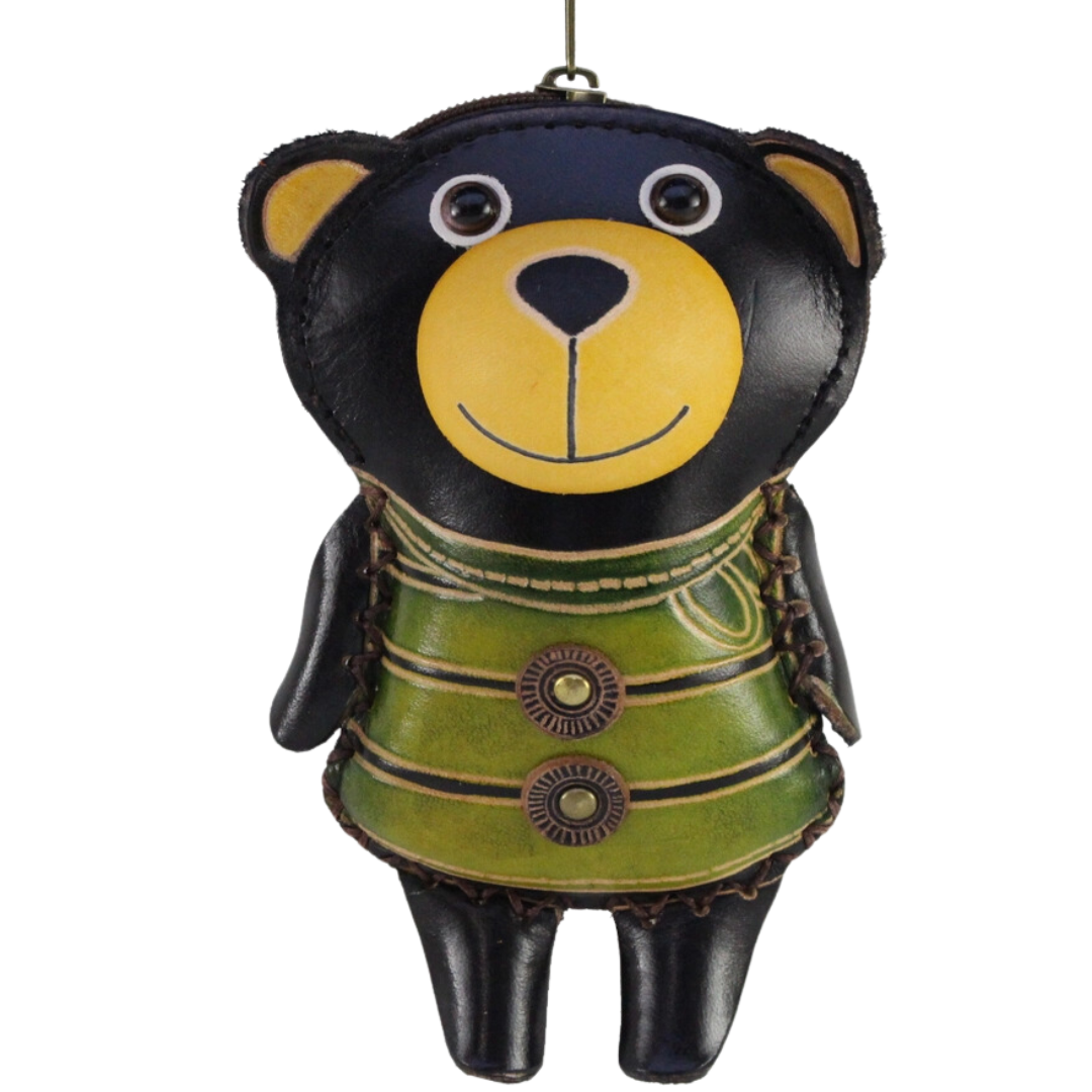 Elevate your accessory game with our Black Bear Leather Wristlet, crafted from genuine leather for both durability and elegance. This charming wristlet features: