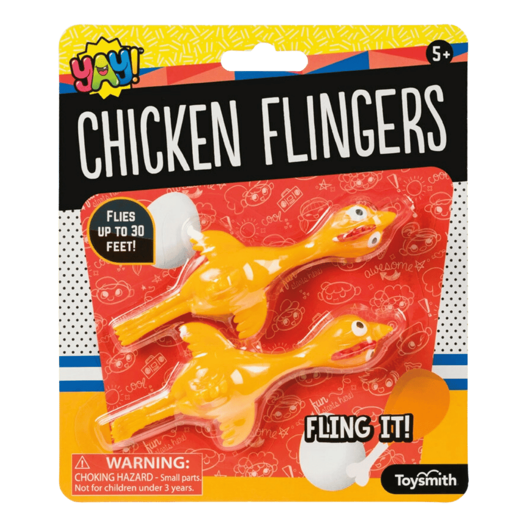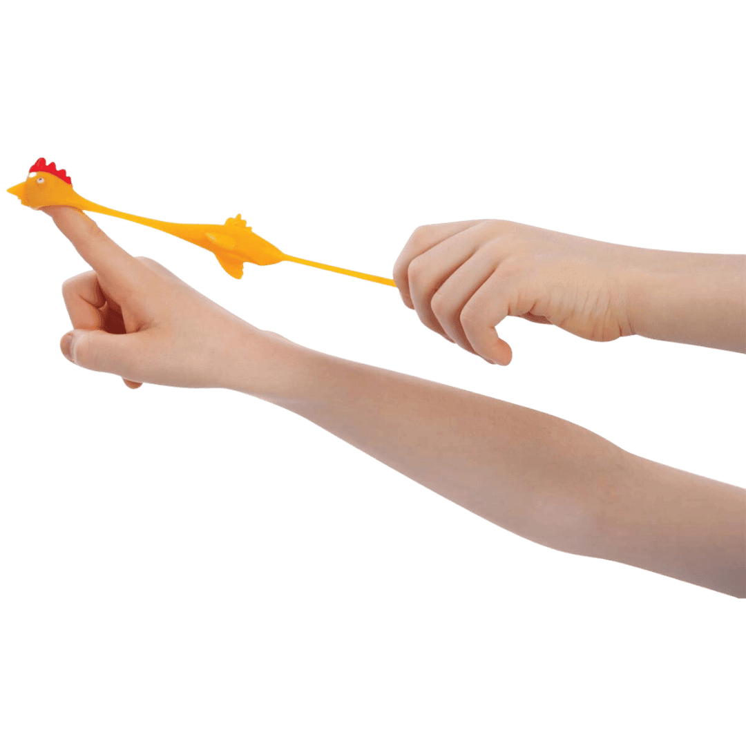 This fun playset includes two sticky chicken toys - perfect for pulling back and flinging as far as you can! Compete with friends or try to top your own distance records. These crazy chickens love to fly, so pull them back and set them loose!