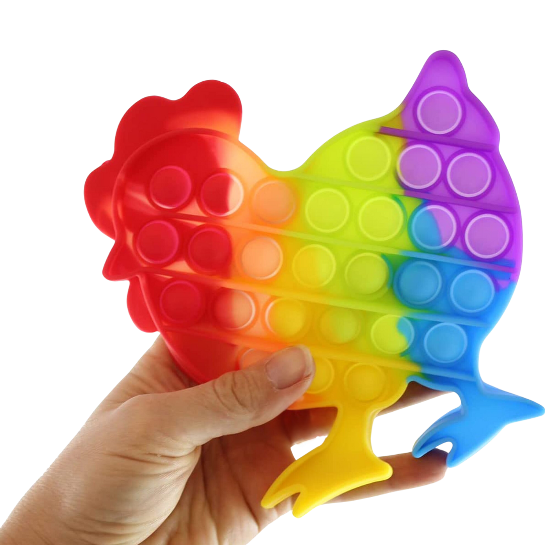 Cluck Up the Fun with a Playful Chicken! Meet the Rainbow Farm Fidget Bubble Popper - Chicken, a charming and entertaining fidget toy that brings a touch of farmyard fun to your day. Designed with a delightful chicken shape, this fidget toy is perfect for endless popping enjoyment and soothing sensory relief.