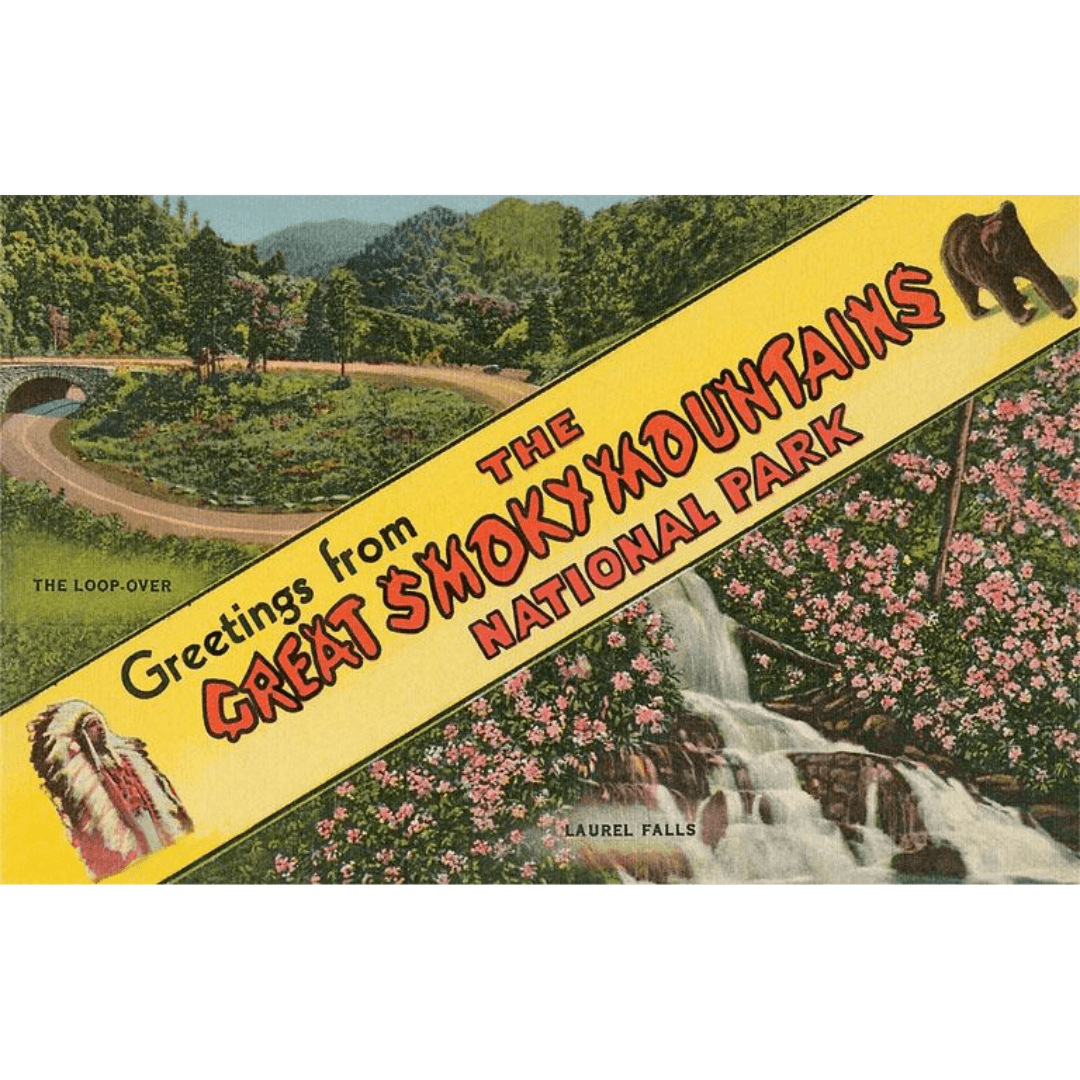 Greetings From Smoky Mountains- The Loop-Over and Laurel Falls Postcard