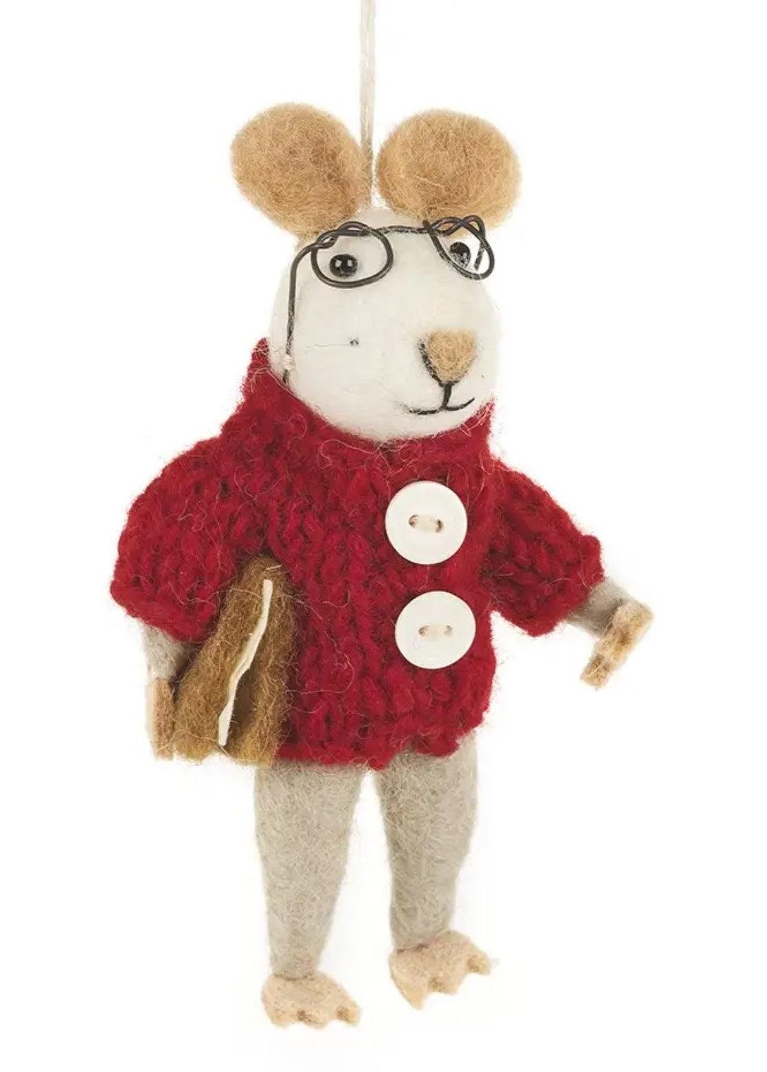 This adorable mouse is the perfect gift. It is handcrafted using sheep wool, and felted with many little details that would make anyone smile.