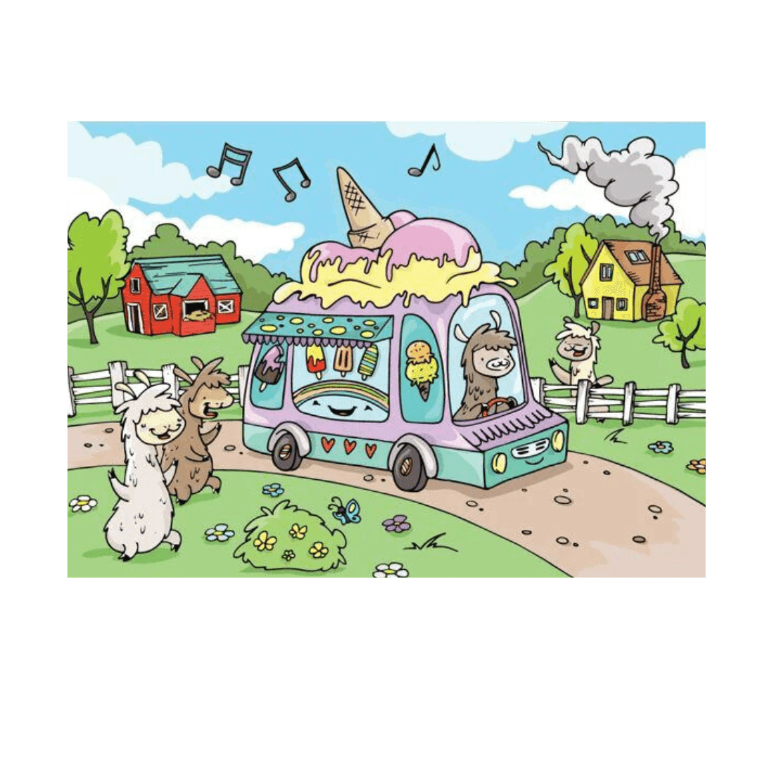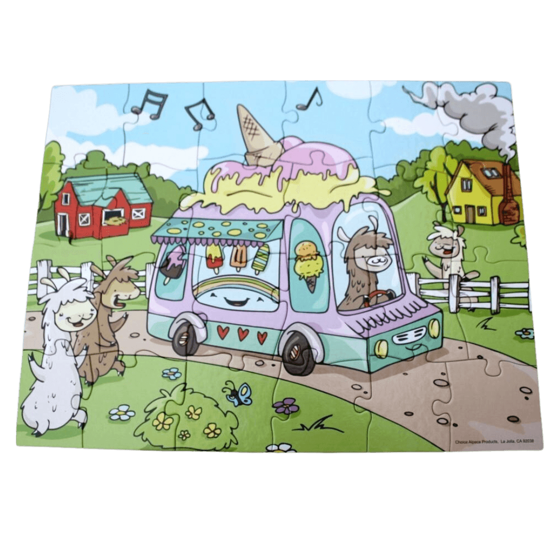 The ice cream truck is here! Delight a child’s imagination while improving their eye-hand coordination, problem-solving, and color shape spatial reasoning all while having fun with this delightful alpaca-themed jigsaw puzzle.