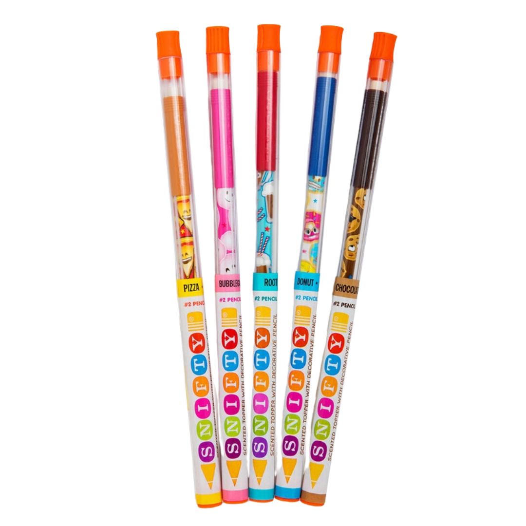 Bring a tasty twist to your writing with our delightful Junk Food Scented Pencil Toppers - 5 pack, each topped with a reusable junk food-scented cap. This set includes five irresistible scents: