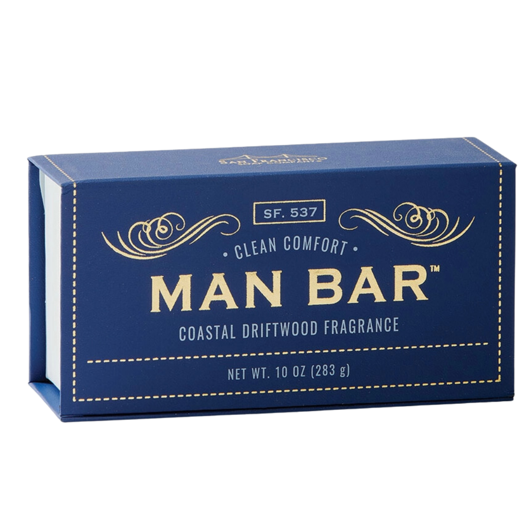 Introducing our newest Man Bar Soap Collection, the perfect soap for whatever kind of man you are. Each 10 oz. bar is thoughtfully crafted with unique fragrances that evoke strength and character, providing a luxurious cleansing experience. Packaged in giftable leather-textured boxes, these bars blend the finest ingredients for a rich, moisturizing wash that leaves your skin clean, soft, and lightly scented with a fresh fragrance. Wash your body the manly way.