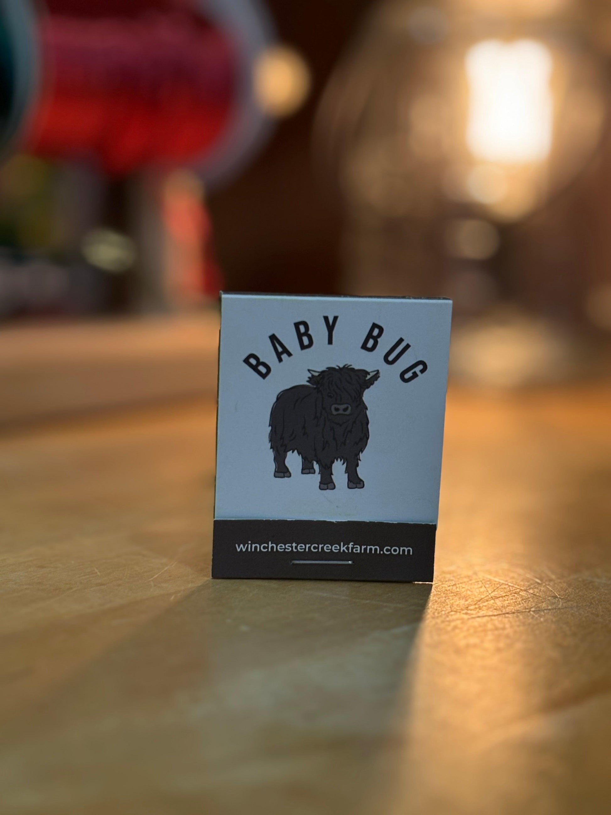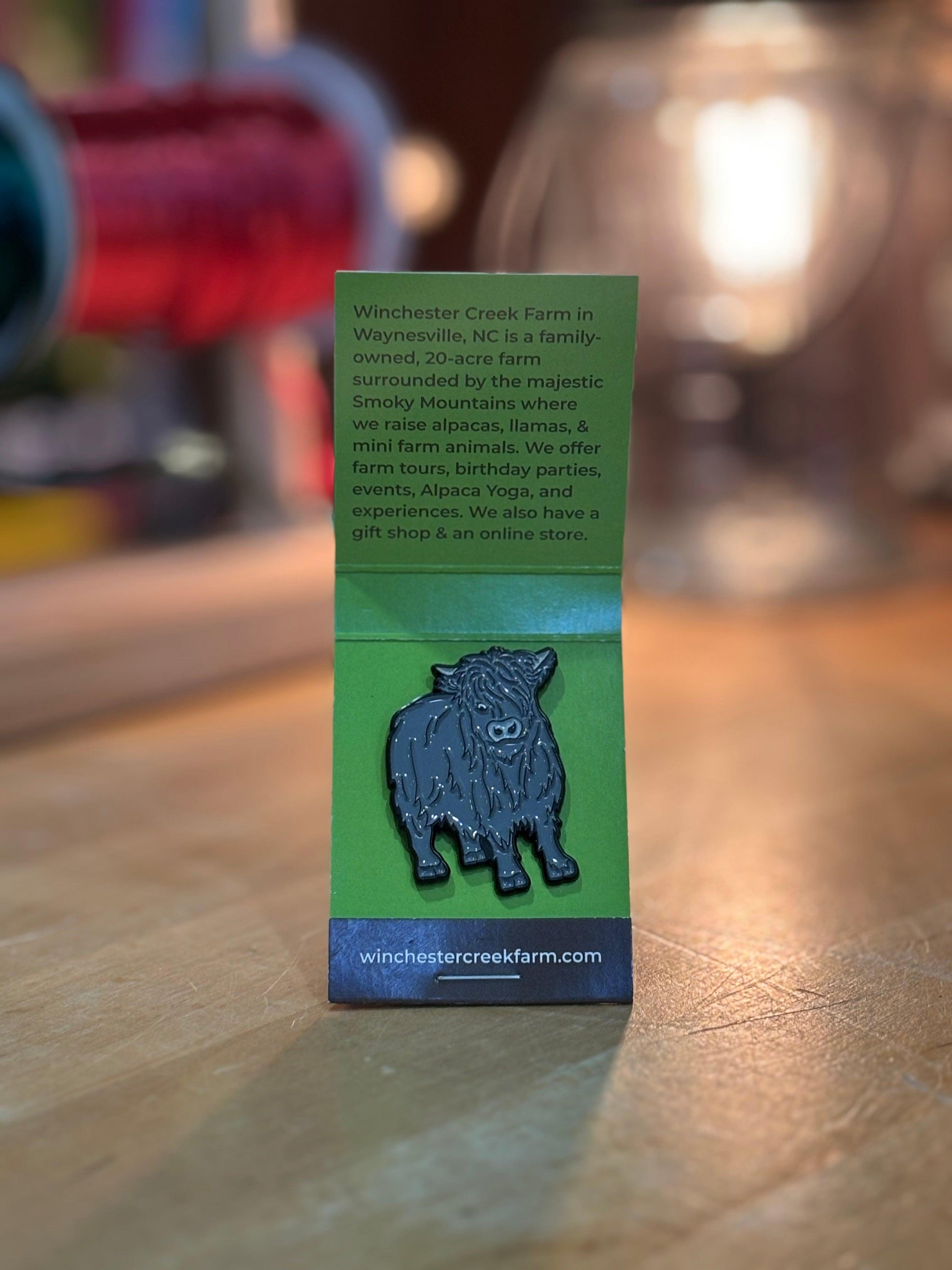 Baby bug is everyone's favorite highland cow! At only 36 inches tall, she has a special little place in all of our guests hearts. This enamel pin is an amazing souvenir for anyone who loves highlands. Each comes in collectable matchbox packaging.