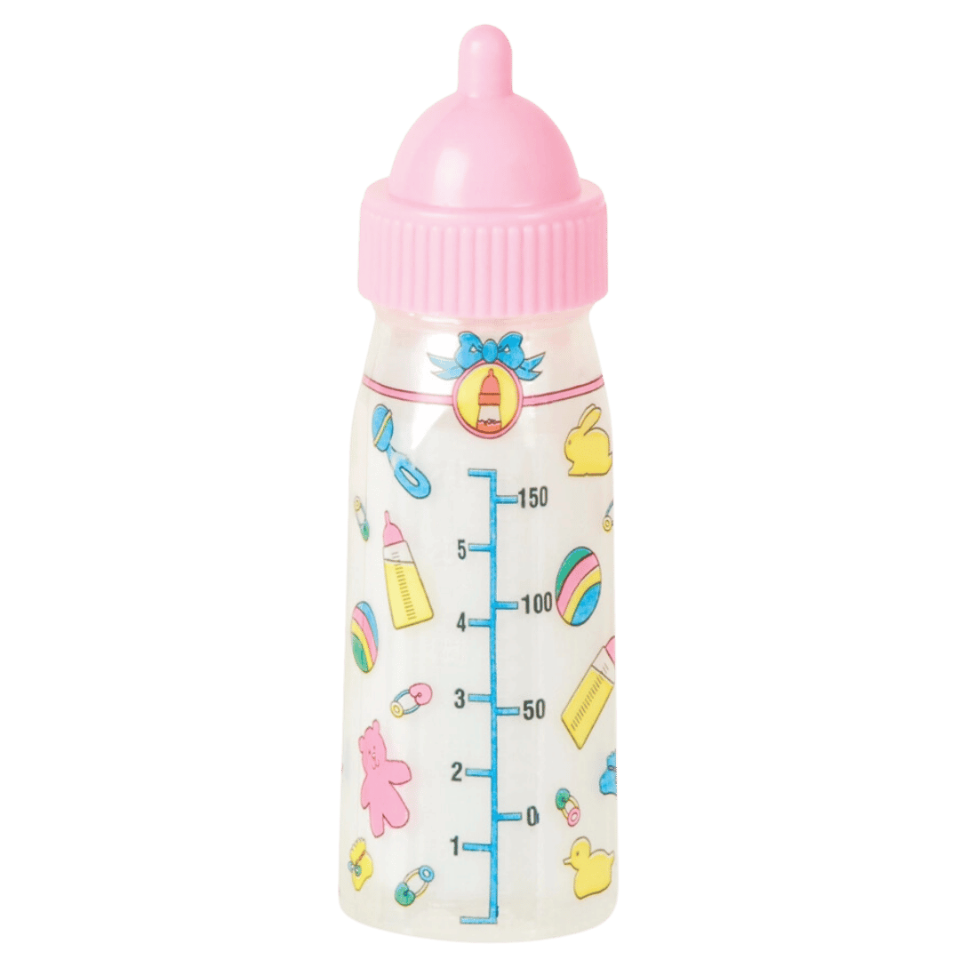 This charming accessory set includes two bottles with colorful liquid that magically disappears when tilted for feeding. The liquid reappears when the bottle is upright again, adding a touch of enchantment to playtime.