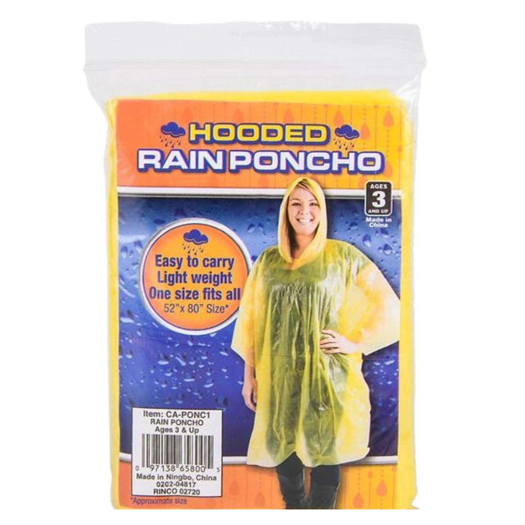 Stay dry and comfortable with our Rain Poncho! Measuring 52 x 80 inches, it’s designed to fit a range of sizes, making it perfect for everyone from kids to adults. Whether you're caught in an unexpected downpour or gearing up for an outdoor adventure, this poncho offers quick and reliable weather protection. Ideal for camping, hiking, or everyday use, it’s a must-have for staying dry and enjoying the outdoors.