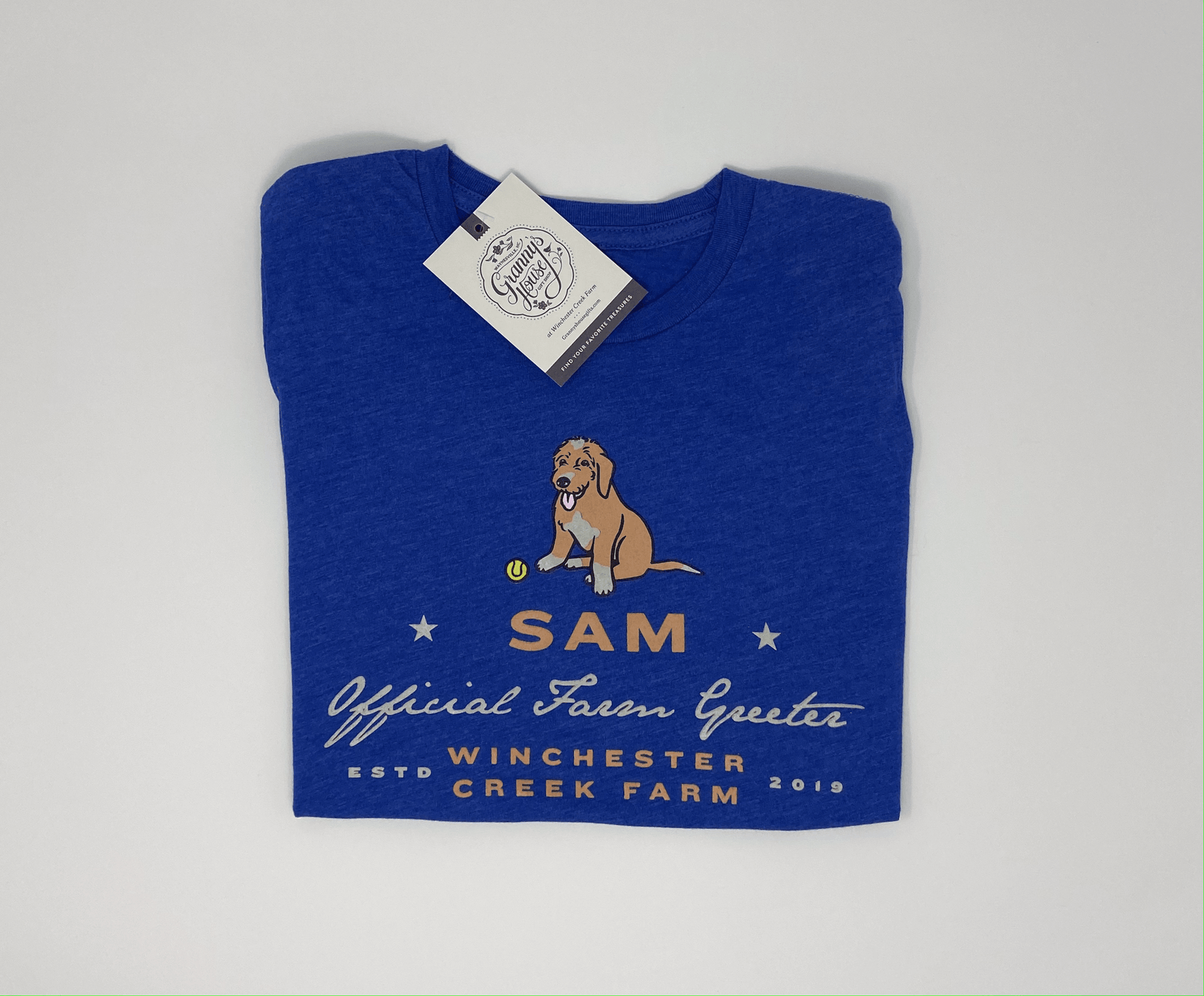 You won't want to take off this best-selling unisex tri blend t-shirt with a uniquely soft tri blend fabrication, modern fit, crew neck, and short sleeves. Featuring our friendliest farm greeter, Sam.