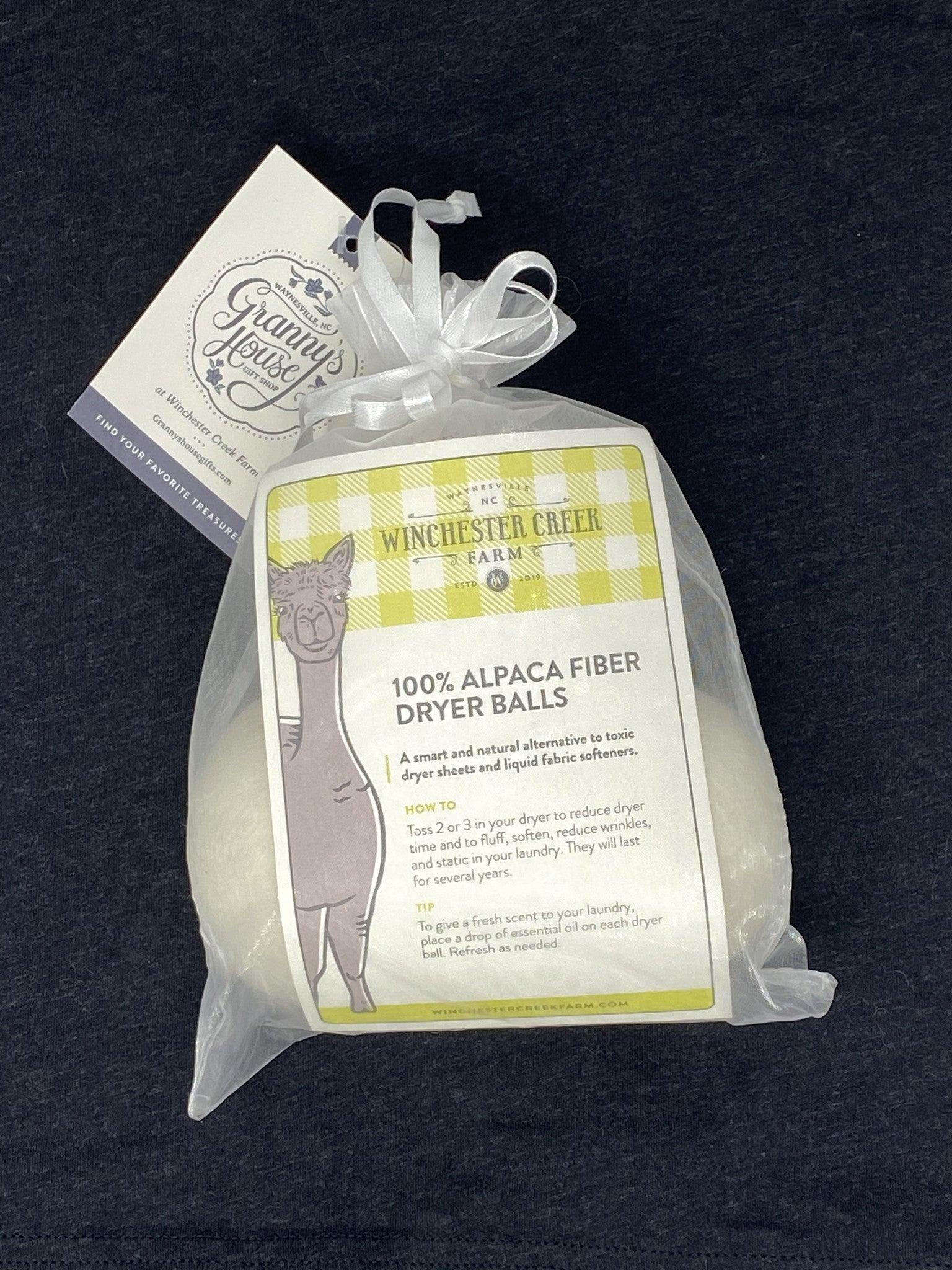 This set of three alpaca dryer balls are a perfect alternative to dryer sheets. Not only are they hypoallergenic and sustainable, but they are also better for your dryer. They cut down drying time and last 3-5 years, thus saving money on alternative products. This set comes with a gift bag, and is perfect for any size load. We recommend adding 2-3 drops of your favorite essential oil for fragrance. Then, simply toss them in the dryer to soften and reduce wrinkles and static.