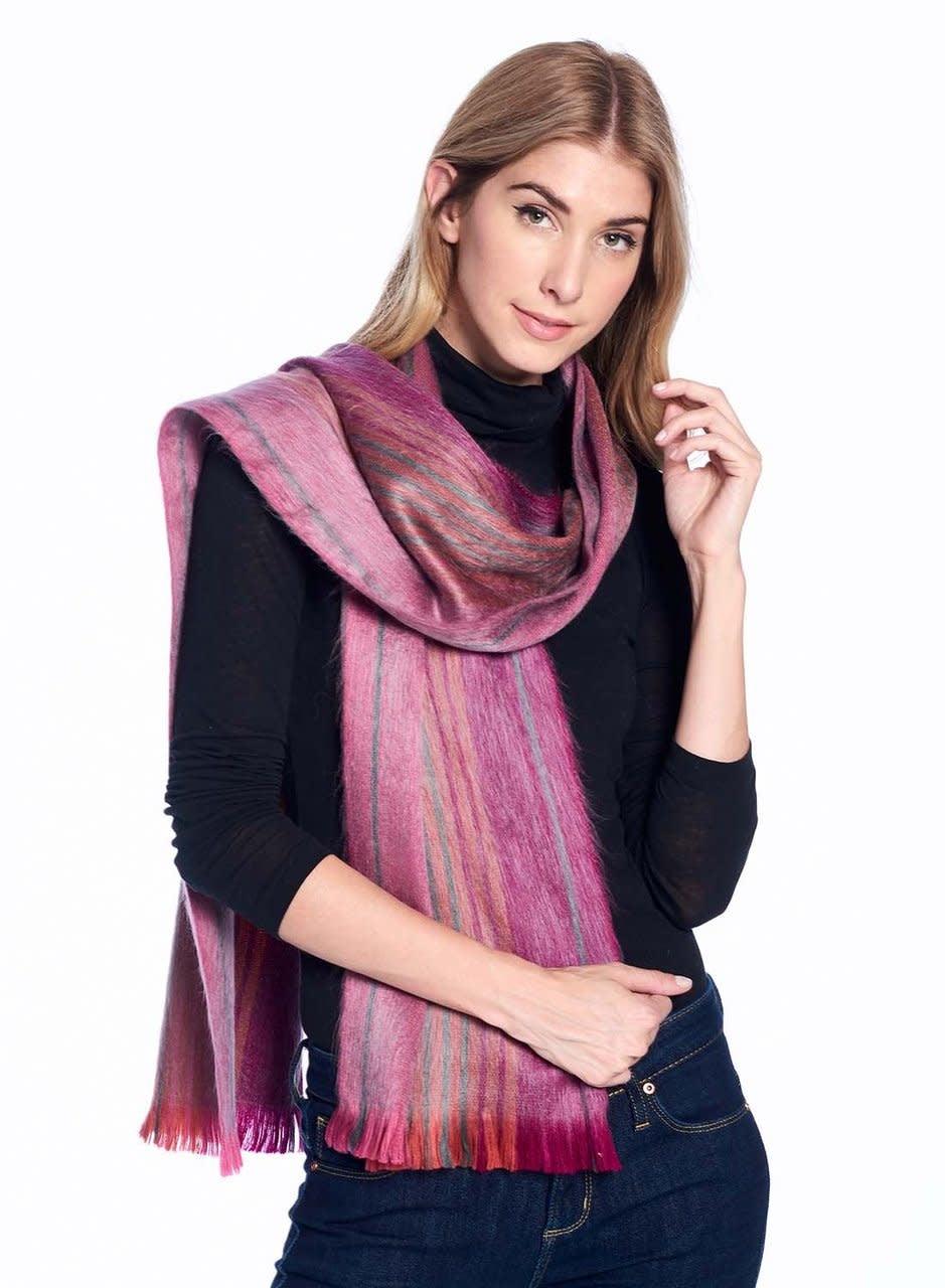 This scarf is unique for its natural crimp, durability, and elasticity. Not only is it soft and hypoallergenic, it is also durable for many years of use. With colors that can be dressed up or down, this scarf is a perfect addition to any closet.