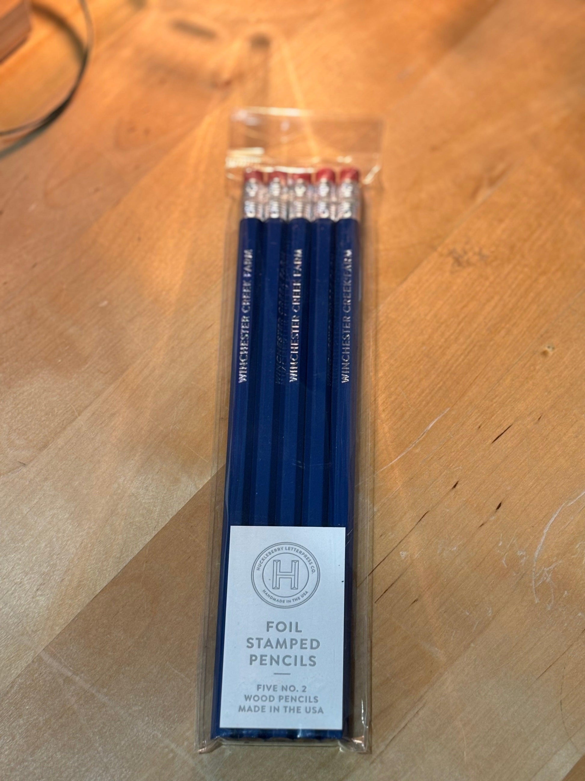 This stunning pack of pencils is painted blue and silver foil stamped with our farm name. Each pack contains 5 Pencils.
