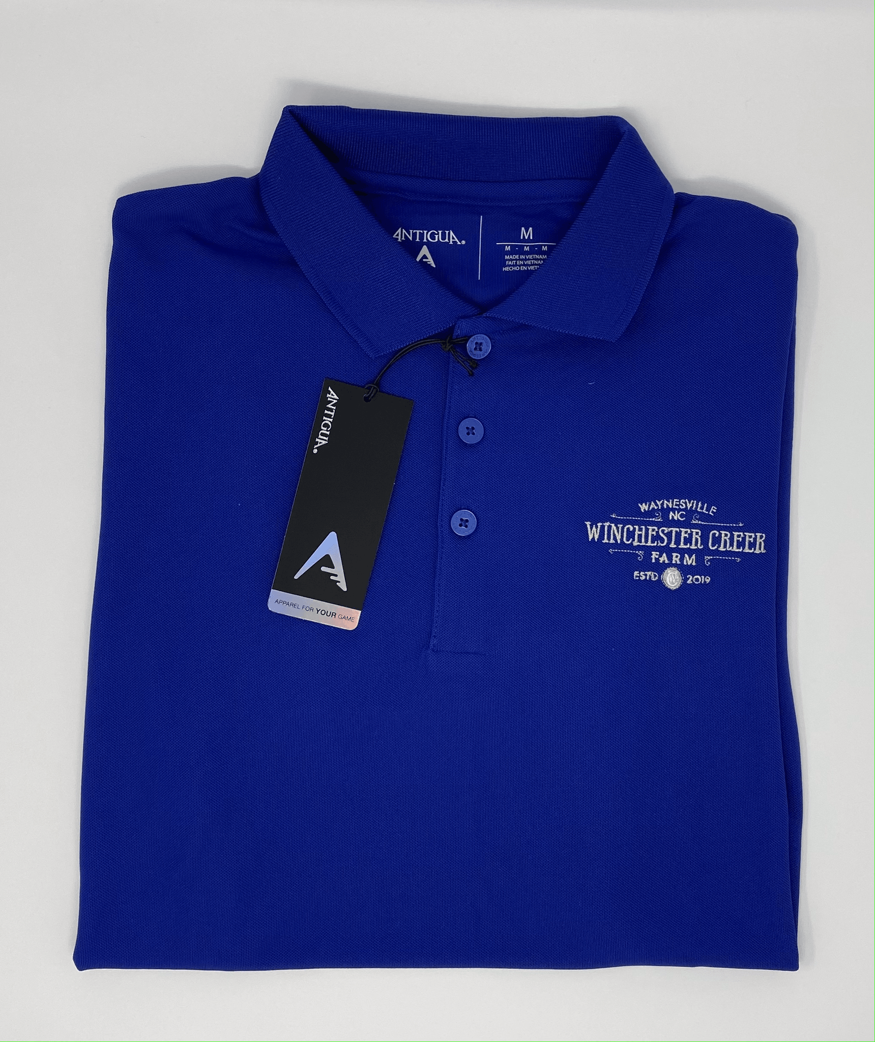 This antigua short sleeve polo is a classic twist on our best-selling shirts. With a stunning royal blue color and our logo, it is a perfect option for anyone.